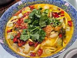 今晚闷闷哋,极需「解忧的杜康」,哈哈!「美丽小厨」的餐牌封面,就是写着这精句[何以解忧,唯有杜康。]想来也对,人生难免遇上不顺之事,无论如何,总要吃,来碗靓饭是动力之所在,方有力量想办法!「美丽小厨」以煲仔饭作主打,同时不乏镬气小炒、煲仔小菜、时令海鲜等等。有趣地,强调[饭是配角,油系灵魂],依我之见,半对!揭开饭盖那一刹那,饭香涌出,正是添油、添酱之佳时,这亦是不能缺的步骤,但好戏更在后头,最美丽之处在那香脆的饭焦!果然没有令我们失望,两煲煲仔饭皆有完美的饭焦,大满足!紫苏鼓蒜排骨煲仔饭 $98味道丰富,紫苏叶香,姜丝、葱花、椒丝添香,排骨的骨与肉比例理想,亦有软骨,肉质松软,非常讨好。丽姐海陆空煲仔饭 $198即是鲍鱼腊味滑鸡煲,鸡已起骨,皮与肉皆滑,鲍鱼弹牙,腊肠有玫瑰露香,润肠味浓,矜贵丰富,配合焦香的米饭,完美!所有煲仔饭都是即点即做,大概需时20分钟,送上枱之后,在面前以漏斗计时多焗一会,服务员会来取走饭盖,然后客人自行加上油及豉油,跟足程序,最佳效果!椒麻芥末烩花甲 $208也来了一道小菜,花甲非常鲜甜,特色在那椒麻辣油,麻辣度中级,刚好没有盖过花甲的鲜,却又很醒神,辣油香而不腻,「美丽小厨」强调的油,的确不错。青柠白玉甘蔗沙冰 $45 饮品也特色,有不少沙冰及果汁,我点了推介的「青柠白玉甘蔗沙冰」清甜凉快。四季金橘柠檬汁(好酸) $40同伴的四季金橘柠檬汁,柠檬味很香,有些少许甘,系几酸,接受得来,越饮越喜欢,抢了半杯分享。楼上铺面积不算细,但谨记必须订位,当晚周四,客似云来,不到七点已经满座,不乏一家大小来光顾的,但倾谈有点嘈吵,是来吃而非聚友倾谈之去处。不设加一,价钱公道,人手充足,味道出色,值得重温,留意用餐限时1.5小时。下次来的话,我很想吃这一页提及的「复刻经典」[砂锅菜胆鸡煲牙拣脊翅/花胶],而且可以点半份 $500,适合我们二人饭局;也想吃[古法碎焖海斑 $888]及 [大红袍脆皮鸡 $300半只]。 #美丽小厨 #湾仔 #粤菜 #广东…查看更多