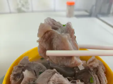 粉岭联和墟“群记牛肉圆猪手”是经历半个世纪还屹立不倒的一间简陋小餐厅,这里以其新鲜且美味的猪手和牛圆而闻名。一进门,您会被那一大锅满满的猪生所吸引,看起来新鲜且多汁,这是餐厅的招牌之一。今天有幸再品尝到了两道令人印象深刻的佳肴:白卤水猪手和牛肉丸米粉。首先,白卤水猪手的呈现令人垂涎。猪手经过精心卤制,肉质酥软,皮层富含胶质,入口即化。卤水的香味渗透至每一丝肉纤维,搭配上葱花和香菜,不仅提升了香气,更增添了层次感。旁边的辣椒酱为这道菜提供了额外的辣味选择,使得整体风味更加丰富。接著是牛肉丸米粉,牛肉丸弹性十足,肉质鲜美,每一颗都饱含著浓郁的肉汁。米粉细滑,吸收了汤底的精华,口感细腻。汤底清澈,味道鲜美,与牛肉丸的浓郁相得益彰。葱花和辣椒酱的点缀,让这道米粉更加诱人。这两道菜不仅展现了食材的新鲜,更体现了厨师对传统烹饪技艺的精湛掌握。无论是作为正餐还是小吃,都能让人感受到美食带来的愉悦。