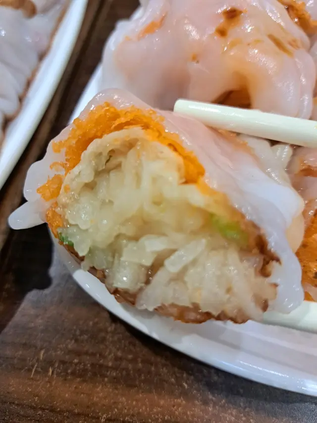 嚟左呢區返工有幾個月,周圍都算多野食,不過同事帶我嚟呢度一定要試下。食店設係工廈,但有少少隱蔽,入面地方亦好細。 咁賣點係咩呢?就係點心即叫即蒸,仲要大大件,真才實料呀。 我地一行四個叫左蝦鮫超大粒,燒買又係勁大粒,义燒腸粉,墨西哥义燒飽,呢個我覺得一般,鳳爪排骨飯冇咩特別,粉果4大粒,餡料豐富,好味,尖椒茄子,食時要小心,因為熱辣辣會燙咀,同埋牛肉球。 個個食到飽飽又有動力去開工😋…查看更多
