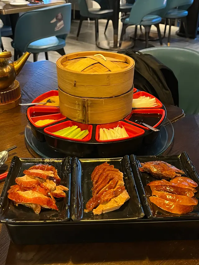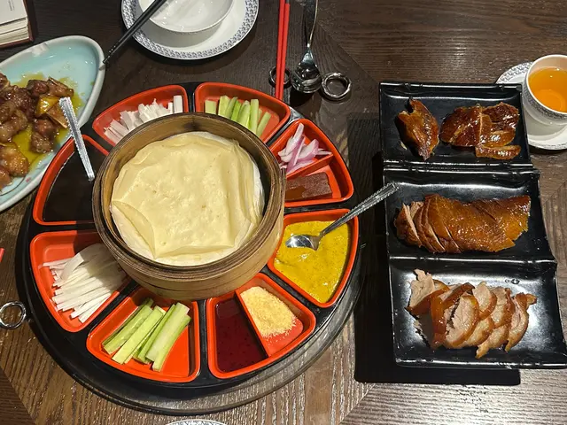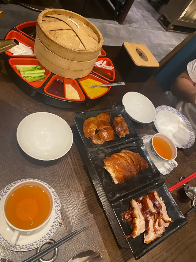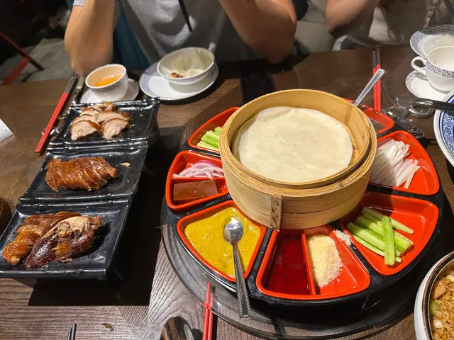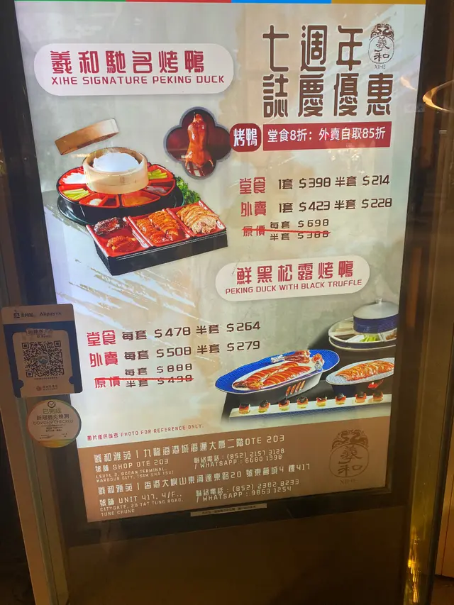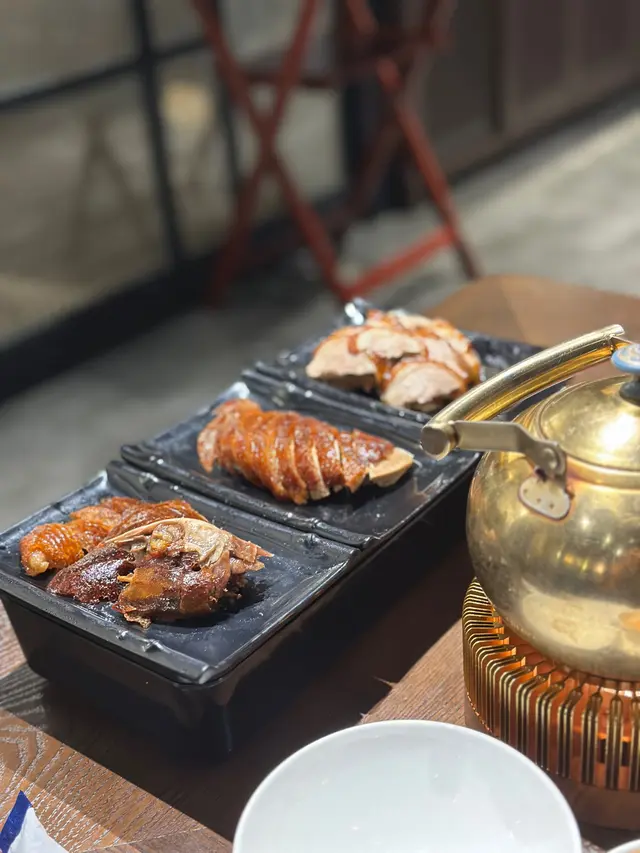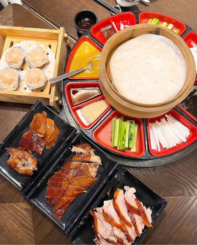 招牌孖寶招牌孖寶係一個唔可以錯過嘅美味組合。首先,有羲和的馳名烤鴨,半隻鴨就已經讓人眼前一亮。外皮金黃酥脆,咬下去時發出清脆的聲音,令人期待。肉質鮮嫩多汁,搭配上特製的甜醬和葱絲,每一口都能感受到鴨肉的香氣,實在令人陶醉。而八寶盒裡的配料,像是脆的、爆炸糖、青瓜絲、醬料等,無疑是為整體的風味增添了層次,吃起來更是有趣。🍗另外,孖寶仲有磚爐吊烤煙燻叉燒皇,這道叉燒皇真係一絕。叉燒經過精心腌製,燒烤後的焦香味彌漫係空氣之中。每片叉燒切得厚薄適中,肉質軟嫩,帶著微微的煙燻味道。咬下去時,肉汁在口中四溢,實在令人心滿意足。🍖黑松露蠔仔煎蛋再來試試黑松露蠔仔煎蛋,煎蛋的外層金黃酥脆,裡面卻依然保持著蛋的嫩滑。每一口都能感受到蠔仔的鮮美,搭配黑松露的香氣,實在讓人難以忘懷。🥚黃金蝦球最後要介紹的是黃金蝦球,蝦球外層裹著一層金黃的脆皮,炸至酥脆,每一口都能感受到蝦肉的鮮甜,裡面的蝦肉彈牙有勁,口感十足。🍤…查看更多