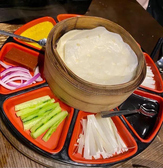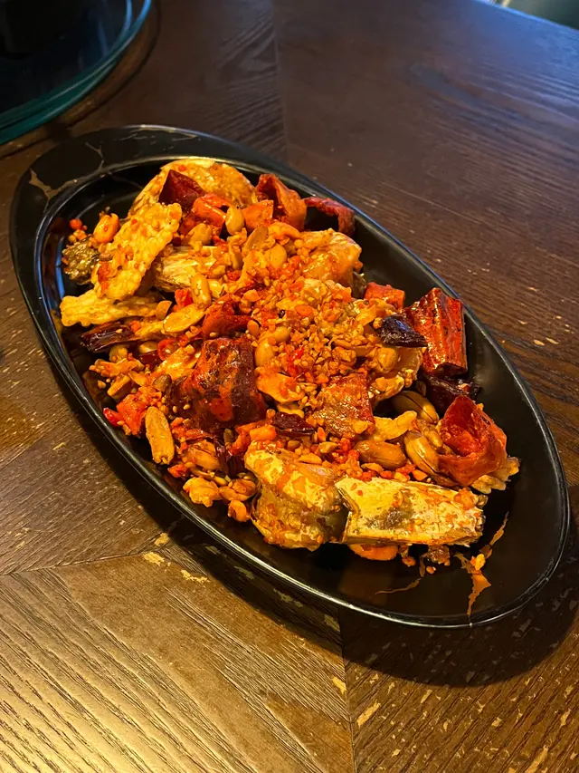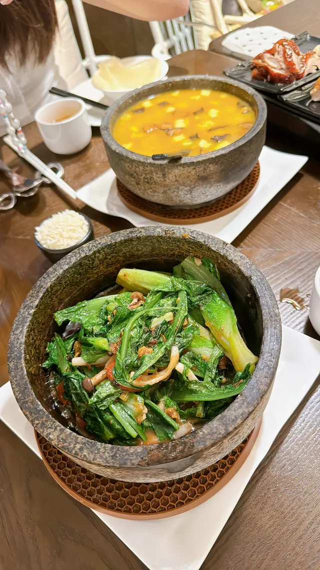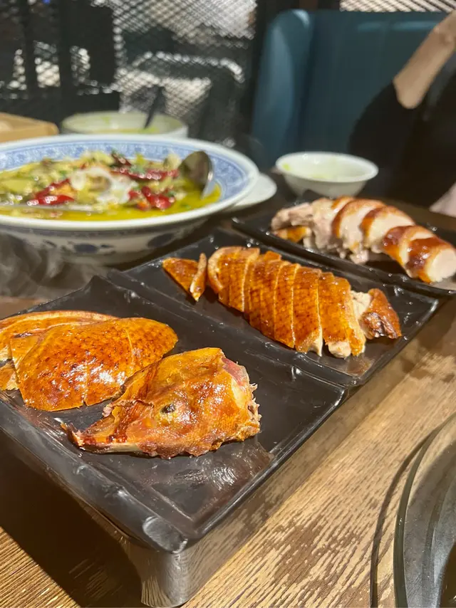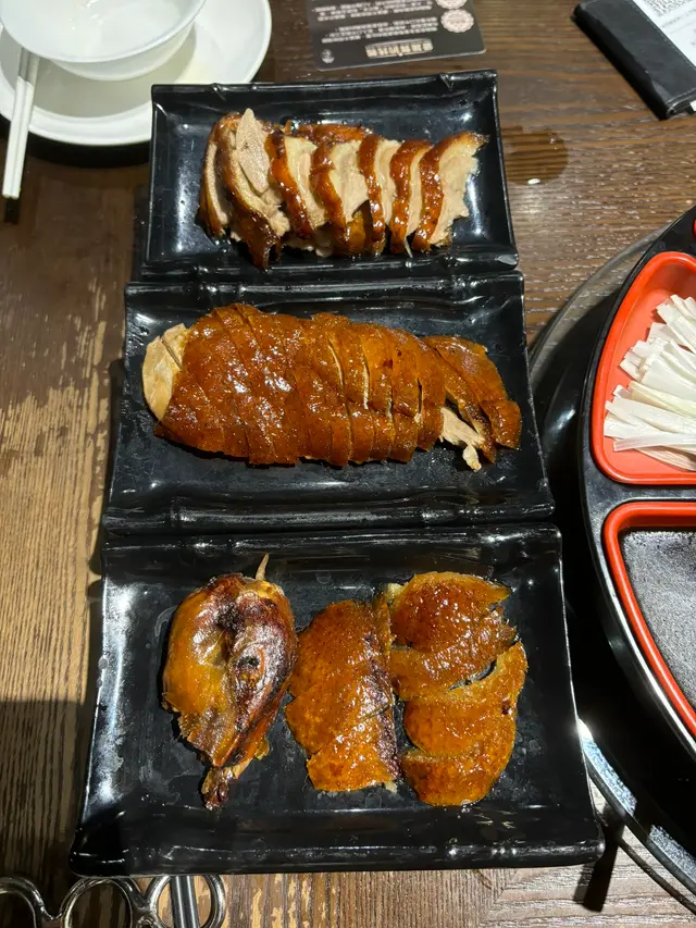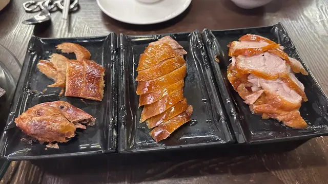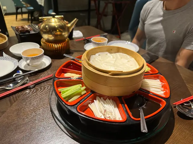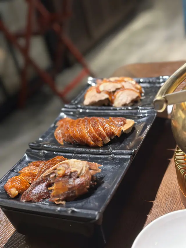 招牌孖寶招牌孖寶係一個唔可以錯過嘅美味組合。首先,有羲和的馳名烤鴨,半隻鴨就已經讓人眼前一亮。外皮金黃酥脆,咬下去時發出清脆的聲音,令人期待。肉質鮮嫩多汁,搭配上特製的甜醬和葱絲,每一口都能感受到鴨肉的香氣,實在令人陶醉。而八寶盒裡的配料,像是脆的、爆炸糖、青瓜絲、醬料等,無疑是為整體的風味增添了層次,吃起來更是有趣。🍗另外,孖寶仲有磚爐吊烤煙燻叉燒皇,這道叉燒皇真係一絕。叉燒經過精心腌製,燒烤後的焦香味彌漫係空氣之中。每片叉燒切得厚薄適中,肉質軟嫩,帶著微微的煙燻味道。咬下去時,肉汁在口中四溢,實在令人心滿意足。🍖黑松露蠔仔煎蛋再來試試黑松露蠔仔煎蛋,煎蛋的外層金黃酥脆,裡面卻依然保持著蛋的嫩滑。每一口都能感受到蠔仔的鮮美,搭配黑松露的香氣,實在讓人難以忘懷。🥚黃金蝦球最後要介紹的是黃金蝦球,蝦球外層裹著一層金黃的脆皮,炸至酥脆,每一口都能感受到蝦肉的鮮甜,裡面的蝦肉彈牙有勁,口感十足。🍤…查看更多