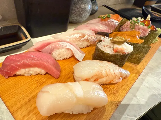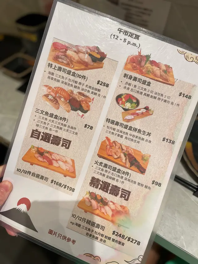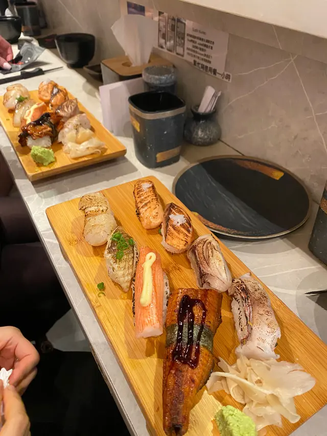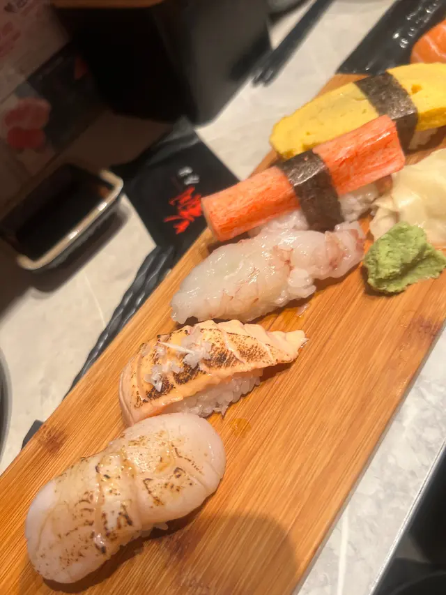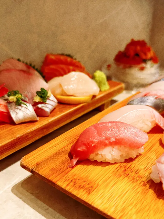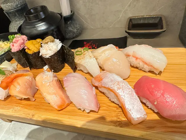 每人都會有1️⃣份 :▼♡刺身5點 :梭子魚 秋刀魚 拖羅 赤貝 蜜柑鯛♡壽司8貫:北海道帶子,青花魚壽司,魴鮄魚壽司,深海池魚腩,三文魚子軍艦,火炙左口魚邊 ,金線鯛,海膽軍艦♡手卷1客:吞拿魚蓉手卷♡麵豉湯1碗雖然價錢平民但係刺身同壽司質素唔差,尤其系刺身🫠食得出非常新鮮,口感都各有特色。-例如拖羅:厚身肥美-赤貝食落就鮮甜爽口壽司方面:-帶子口感食落好q彈厚實-火炙左口魚邊就火炙得啱唔好,好香口另外我地仲加左隻生蠔,隻蠔大隻得黎肉質都鮮甜,蠔味極重😌👊🏻👊🏻👊🏻👊🏻👊🏻👊🏻👊🏻👊🏻👊🏻👊🏻👊🏻👊🏻👊🏻👊🏻👊🏻👊🏻👊🏻廚師亦都會介紹返每樣嘅品種同食法,就算張單加埋1️⃣ 2個人都系600蚊,所以真係幾抵😂廚師都會按返時令嘅刺身同壽司種類發辦,所以未必會食到一樣嘅刺身同壽司,所以去之前記得問清楚丫😆…查看更多
