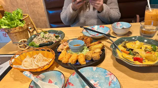我同朋友好鍾意黎呢間泰國餐廳食泰國菜,因為價錢唔算貴,又有質素,我哋好鍾意食佢嘅生菜包,我哋唔係食得好辣,我哋揀咗小辣,另外叫咗個泰式拼盤,同埋咖喱牛肉加薄餅,兩個人食三款菜已經好飽,咖喱好香,又唔辣,薄餅好鬆脆,配埋咖喱汁一流,而餐廳入面又大間,啲位又坐得舒服,值得再嚟。查看更多