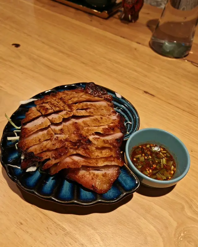 ⭐️炭烤松阪豬頸肉:豬頸肉經炭火慢烤,外脆內嫩,味道特別香濃。加上獨特嘅泰式調味料,令每一口都充滿層次感,極度推介。⭐️乾炒雞河:乾炒雞河係泰國街頭嘅常見美食,係香港都食到泰國既味道,炒出嚟嘅河粉滑順入味,雞肉粒粒分明,色香味俱全。⭐️椰香斑蘭千層糕:呢款甜品層層分明,每一層都有好香嘅斑蘭香味。而且千層糕上業先係熱既,食落椰香味濃郁,口感柔滑⭐️凍泰式奶茶:泰式奶茶色澤濃郁,茶香同奶香完美融合,非常適合咁熱既天氣飲用。查看更多