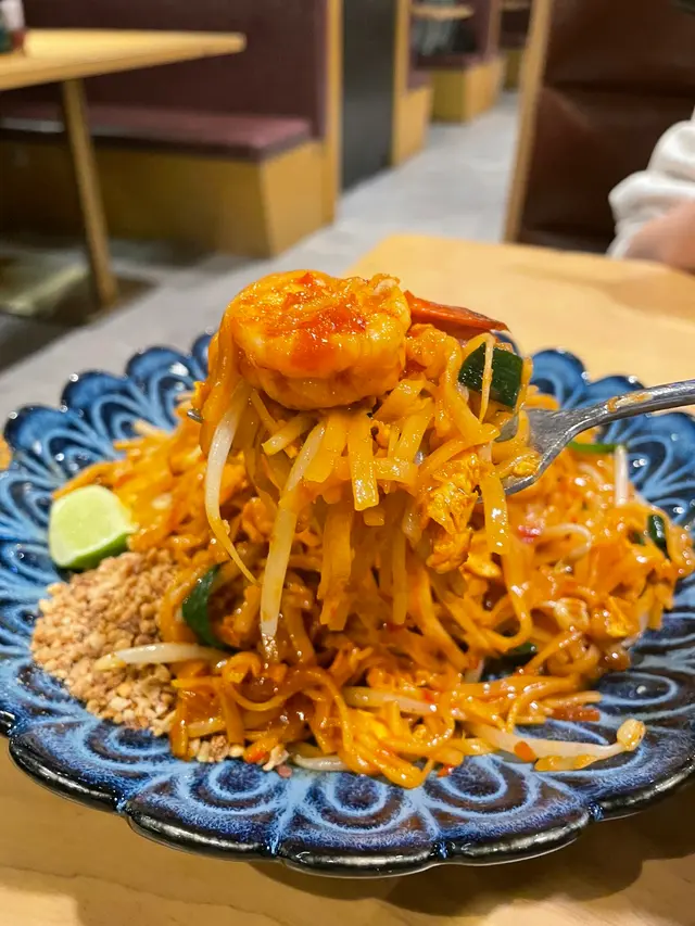 之前係觀塘番工成日都會黎幫趁佢,最近聽舊同事講佢搬左鋪,大左又靚左,甘當然要黎試下佢啦!炭烤沙嗲,叫左雞肉同埋牛肉串,水準依然keep 到,雞肉夠曬嫩滑而牛肉好香好多汁,點埋配送既沙爹醬黎食真係正, 好味!泰式鮮蝦炒金邊粉,黎依度必點既菜色!炒金邊粉有大大隻鮮蝦,新鮮彈牙,而金邊粉吸曬味,甜甜地酸酸地非常開胃。青咖喱椰汁雞肉,可以講係我最中意既菜色!青咖哩加左椰奶,湯汁濃郁,雞肉嫩滑,撈飯食一流!今次叫左薄餅配黎食,薄餅香脆可口,外薄內厚, 可以好完美地掛上青咖哩汁,依個配搭100分!馬拉盞炒空心菜, 醬汁係大量蝦醬加上少少辣醬,炒到有鍋氣非常惹味 ,香辣開胃,而空心菜口感爽脆,真係一啖接一啖好pk就依完!當然熱泰式奶茶同埋芒果沙冰都係my favourite! 識點一定要點!整體黎講環境靚左坐位都適服左,最緊要食物水準依然keep 到,一定會再黎。查看更多