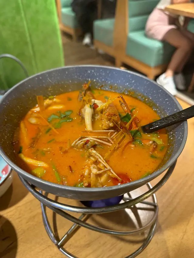 翟道翟泰國餐廳位置都算方便,餐廳內坐得都尚算舒服,看見餐牌都有唔同種類嘅泰國食品,於是order左串燒,黃咖喱、牛三角肉同菠蘿飯。呢度嘅特飲都好多選擇,所以都忍唔住叫左杯美祿沙冰。菠蘿炒飯份量十足。串燒拼盤值得推介👍👍!牛串肉汁鮮嫩😋😋泰式牛三角比較有驚喜!醬汁惹味牛肋骨肉質比較靭,不過味道吾錯冬陰功湯性價比都算高,有半邊龍蝦同大頭蝦在內黃咖喱牛肉抵食,牛肉份量充足!沙冰特飲真係一試難忘查看更多