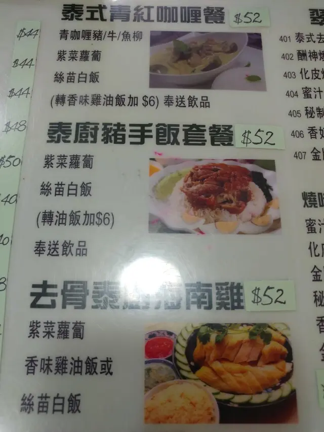 都有好多塊豬手。 林林地好味 加上泰式辣醬一流 有少少娃娃菜。。個湯係紫菜蘿蔔 好多味精 。。凍檸茶真係少少甜。。朋友就食青咖哩牛腩。佢話咁多隻咖哩係呢隻最辣。 同牛腩比其他肉更多更抵食。。我試左少少 咖哩幾香有椰香味 同牛腩好多肉 有邊豆。。不過餐廳食就有烏英 總整體黎講 係抵食 同多野食揀 下次要試下叫湯麵加小食先 …查看更多