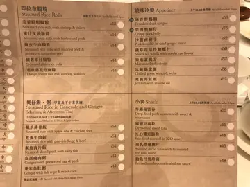 供应多款怀旧与新颖兼容的点心,如鲍鱼烧卖、黑金流沙包。亦有经典粤菜选择:脆皮糯米猪、脆皮牛坑腩,外脆内软。