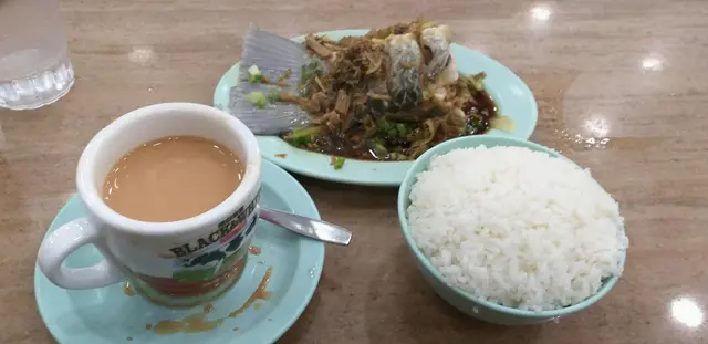 獨自去食晚餐,嗌左碟梅菜蒸鯇魚包白飯包一杯熱飲,揀左杯熱奶茶。夾埋50幾蚊。梅菜有點鹹中帶甜,正正常常算。曬左d 蔥花粒,有少少香味,亦有薑絲,拎魚肉冇咁腥。鯇魚正是魚尾部分,夠厚身夠大舊,唔老身但熟,都夠滑又唔腥。而熱奶茶算是不錯,幾夠滑,有茶香,亦有奶香,見到佢地用黑白淡奶,而奶茶既茶用好熱既水沖,亦用絲襪去拉奶茶,可見佢地用少少技巧去製造呢杯奶茶,一間普普通通的茶餐廳,50幾蚊算係咁。係咁就一餐啦。查看更多
