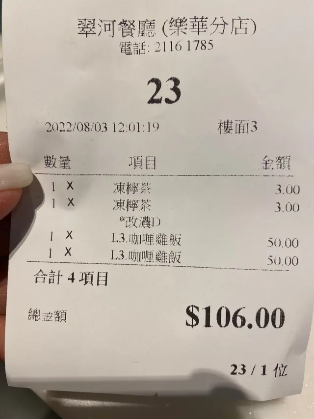 翠河餐廳 (牛头角) 网址: https://s.openrice.com/QrLS0iLK700 地址: 香港牛頭角振華道70號樂華商場地下108-109號舖 电话: +852 21161785