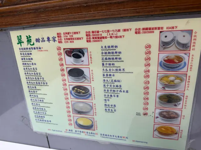 翠苑甜品專家 (北角道) (北角) 网址: https://s.openrice.com/QrLS0b2y000 地址: 香港北角北角道13號地舖 电话: +852 31041528