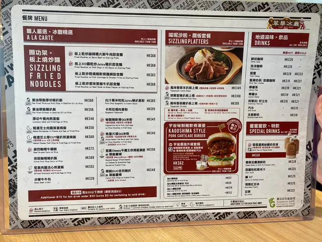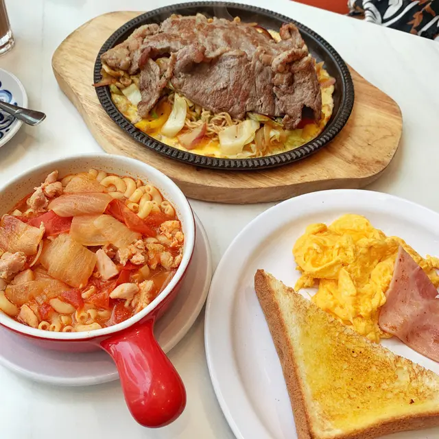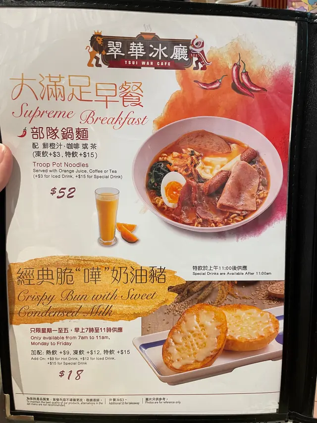 不過不失冰室lunch Hkeatwhatho等级42021-04-18519 浏览 关注 Lunch想食港式冰室,係荃灣廣場入口見到呢間就試下佢。環境都寬敞,雖然得2個人但都可以坐一個卡位,今次咁岩係坐到窗口位,大大嘅落地玻璃望住街景好寫意🌞而且食物款式都算多,揀左陣先揀到~🔸板上乾炒黑椒牛扒即食麵 (HK$68)其實本身order個陣應該係xo醬炒豬扒,但黎到發現佢落錯單,驚再整會黎唔設所以就照食呢款啦😅公仔麵份量都尚多,黑椒味適中。牛扒好嘅係佢已經幫你切成一塊塊,不過可能因為本身已經煎過,再放係鐵板上就會變得老左啲,肉質鞋身左🤥最鍾意嘅位係最底有一層蛋,撈返同麵一齊食都唔錯。🔸濃厚鮮茄雞粒通粉拼火腿炒滑蛋牛油多士 (HK$52)湯底嘅鮮茄不濃不淡啦,雞粒份量還可以,就係好普通嘅一碗通粉。炒蛋都滑滑的,成個常餐最好食嘅就係牛油多士,有陣陣嘅牛油香,咬落去外脆內軟😜餐飲熱奶茶唔洗加錢,但凍奶茶就要加成$13,本身以為咁貴係因為有特別包裝。點知黎到就係平時餐廳好嘅普通凍奶茶,唔係好明個價錢係貴係……😖😖…查看更多以上食记乃用户个人意见 , 并不代表OpenRice之观点。赞好分享不過不失冰室lunch 翠華冰廳 https://s.openrice.com/QrLT0kzGU00检举 张贴 评分3味道4环境3服务3卫生3抵食等候时间15 分钟 (堂食)用餐时段午餐