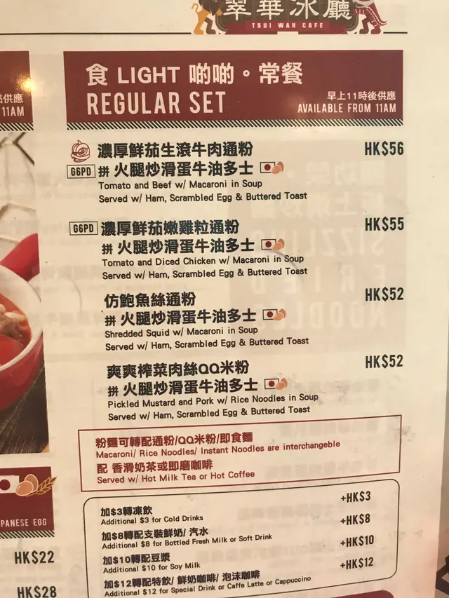美好早餐由此起 chingbee0808等级42021-03-06553 浏览 关注 其實有時都唔係好明點解啲人成日話翠華唔好食 我自己覺得佢嘅早餐冇80分都有90分!淨係睇佢嘅煎雙蛋加厚多士已經值回票價 煎得金黃色 火候控制得啱啱好 呢個先係標準嘅早餐個荷包蛋 係我夢寐以求嘅熟度!有少少脆邊 蛋白蛋黃比例一比一可以加入個面度食 令到麵條更加幻滑呢度嘅早餐已經延長去到12點 平時星期六日瞓晏咗都唔使驚順帶一提呢度嘅出餐速度夠快 好啱返工一族上班之前充充電 為你迎接每日美好嘅早上!佢塊多士係金黃色㗎!仲有又香又滑嘅牛油…查看更多以上食记乃用户个人意见 , 并不代表OpenRice之观点。赞好分享美好早餐由此起 翠華冰廳 https://s.openrice.com/QrLT0744y00检举 张贴 评分4味道4环境4服务4卫生4抵食用餐途径堂食