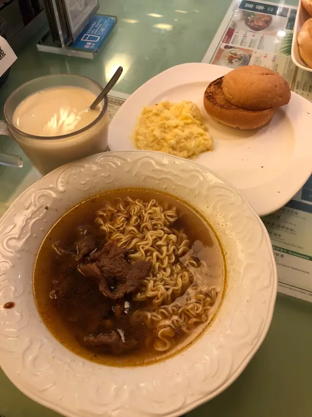 入到去 先睇睇餐牌有A餐火腿通粉 配太陽蛋 腸仔 豬仔包B餐 沙嗲牛肉麵面 配 炒蛋 豬仔包C餐 雪菜肉絲米粉 配豬仔包 D餐 五白肉丁麵 配 炒蛋 豬仔包 見到每一個餐麵係有豬仔包 , 但分配不同 , 價錢都不同 。 留意❗️❗️❗️❗️ : 不得自由配搭 即是火腿不能轉面 , 沙嗲牛肉不能轉米粉 , 肉丁不能轉通粉⋯⋯