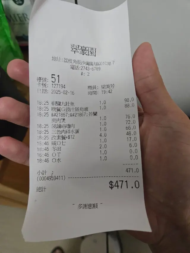 翠豪園餐廳 (荔枝角) 网址: https://s.openrice.com/QrLS0GJi000 地址: 香港荔枝角長沙灣道833號長沙灣廣場地下G01C號舖 电话: +852 27439713