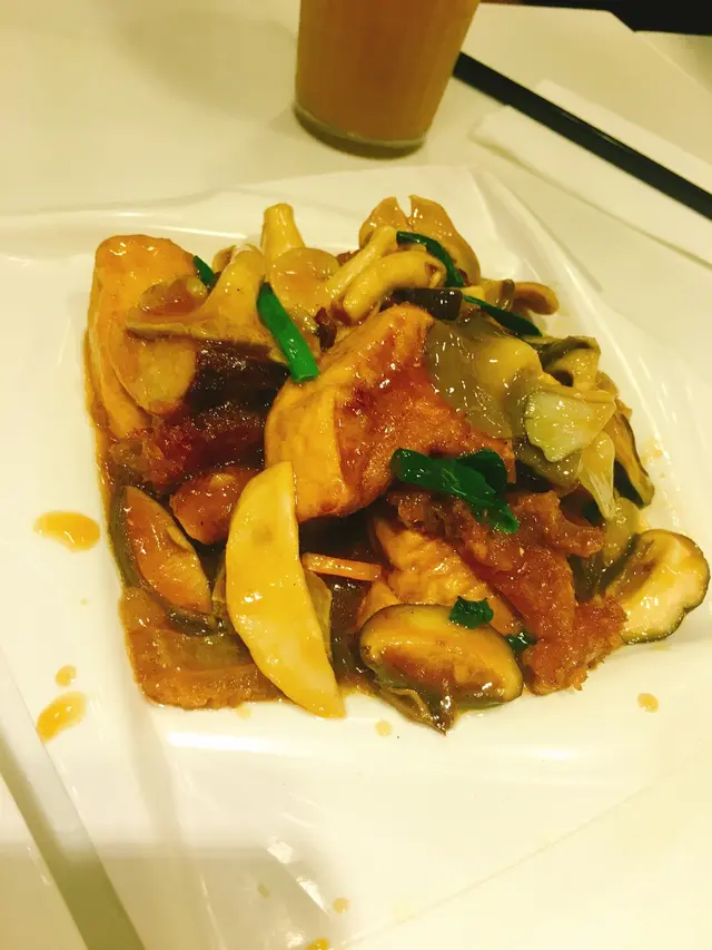 睇完無線(區區開伙)介紹呢間餐廳後,第二日即刻訂枱試下,雖然位置唔多就腳,但揸車嘅我附近比較多咪錶位,所以無乜問題。去到門口大約一点鐘,慣常食飯時間,門口比較多人,要等位,見到鋪內座位不多,大約等左10分鐘就可入座。一家四口,點左四款午餐,焗鮮茄磨菇豬扒飯,西芹雞柳,椰菜回鍋肉同瑞士汁乾炒牛河。焗鮮磨菇豬扒飯………………上枱時令我震驚,份量之大我諗兩個人食都夠,只係50蚊,抵到震。鮮茄入口融化,焗到透晒,正!豬扒質感軟硬恰到好處,有咬口,兼且好貼心地上枱時已經幫我將豬扒斬件,加分,最重要係夠熱辣辣,真係feel到响焗爐剛剛出爐,飯面有少少焦燶現象。西芹雞柳……………………西芹有少少淋,可能煮過籠,但雞柳味道一流,肉味非常足夠,有埋白飯同凍飲只係42蚊,咁平究竟有無錢賺架?真心覺得生意難做!椰菜回鍋肉同樣係42蚊,椰菜夠爽甜,回鍋肉夠乾身,但略嫌有D肥,keep fit嘅我唔係咁夠膽食,但呀仔話送飯一流。瑞士汁乾炒牛河就品評唔到,因為呀囡突然收到call要返公司,只好打包比佢拎走。總括而言,確實响深水埗區有呢D質素嘅茶記真係罕有,值得比like查看更多