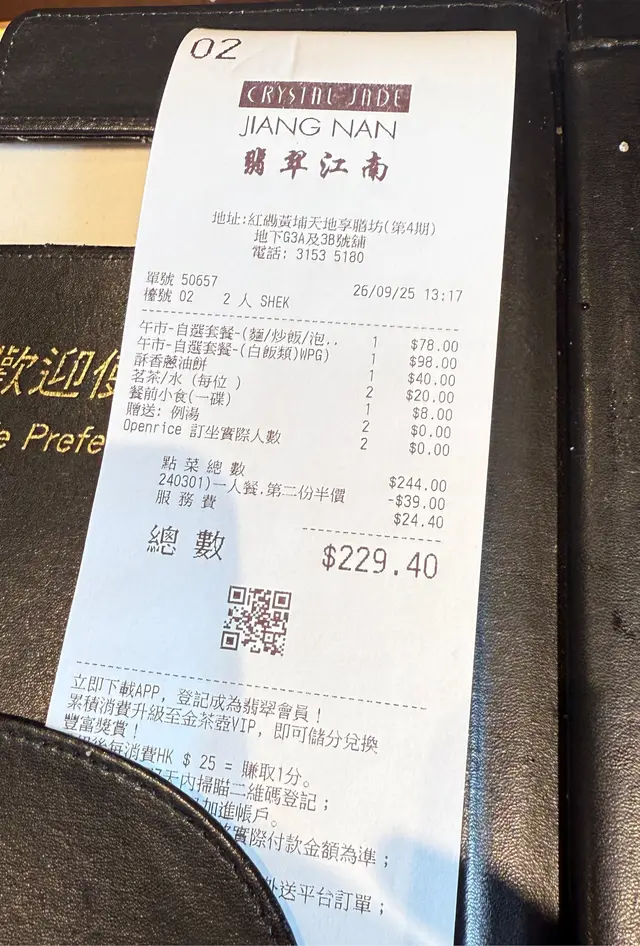 翡翠江南 (红磡) 网址: https://s.openrice.com/QrLS0Wly5W0 地址: 香港紅磡紅磡黃埔天地享膳坊(第4期)地下G3A及3B號舖 电话: +852 31535180