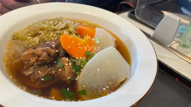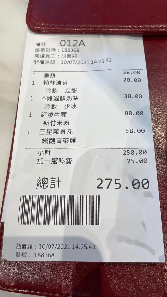 餐廳名,景色,餐牌都幾吸引,但結果,係非常失望,無下次。「蛋餅」$38真係蛋加餅皮,硬到咸,單寡,索價三十八蚊,就連芝士都無,味道又唔討好,食開呢個價位,講緊會有肉鬆或芝士或吞拿魚。「紅燒牛腩新竹米粉」$88湯底味道香既,但牛腩係湯渣,又柴口又癡牙,咬到我牙都痛,啲蘿蔔又唔淋,而且又唔入味。「三星蔥貢丸鐵觀音茶麵」$58味精重兼容有內涵貢丸三大粒,口感卡住卡住粗糙茶麵一大堆,雖然佢定價係平,但真心好差。…查看更多