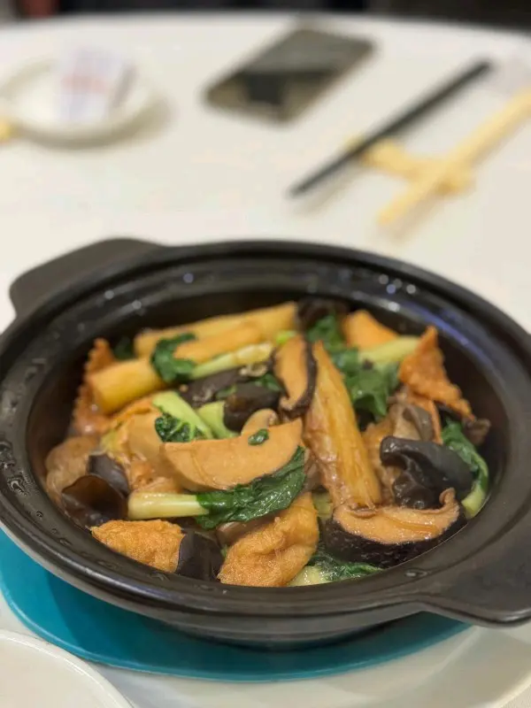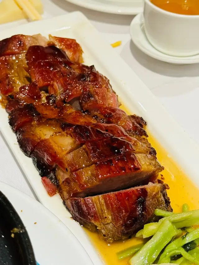 在太古城工作了差不多四年多, 唯一一間酒樓未吃過的, 就是這家, 除了因為是最難預訂外, 也是因為距離比其他遠, 今次有緣吃到, 只能說見面不如聞名. 食客人潮如湧, 座位空間感是幾間酒樓裏面住擠迫的. 午安市也是點心, 燒味和小菜, 不會有什麼奢侈的菜式, 而燒味也令人失望. 燒腩仔肉質太乾, 有點燒焦, 吃起來有點焦苦. 叉燒用上半肥瘦的梅頭, 肉質正常但味道偏甜.點心的蝦餃燒賣還算可以, 件頭夠大, 外皮偏厚, 內餡鮮熟度OK, 牛腩煲則是最失望的, 上枱的時候已經見到其肉質之乾柴, 一咬就感受到完全的纖維而非肉嫩, 比一般粉麵店的做得更差, 就是選擇一些比較肥美的部位, 也解決不了, 而蘿蔔多渣也吸收不到肉汁之精華, 簡單來說不合格.I haven’t had the chance to try it until now since my office moved to Cityplaza for 4 years. It‘s difficult to book and far from other restaurants. My experience was disappointing as the restaurant was crowded and the seating space was cramped. The lunch menu mainly consists of dim sum, roasted meat, and small dishes, but the roasted meat was dry and burnt, and the char siu was too sweet. The shrimp dumplings and siu mai were decent, but the beef brisket was tough and lacked tenderness. Overall, it did not meet expectations.查看更多