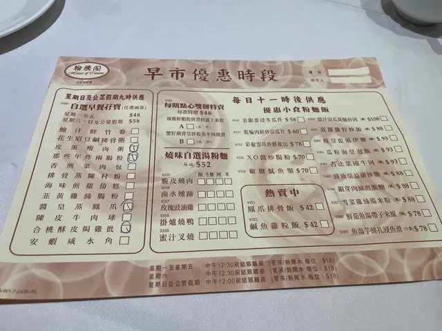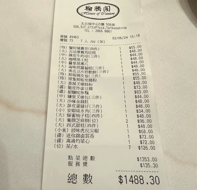 星期日特登剄太古城飲茶,選擇翰騰閣,估唔到不論食物質數,服務態度,完全不合格,百分百鼓勵港人北上消費。到達時候,只有50% 枱有人坐,居然仲話要等位,原來係留枱比熟客,什麼陳生,張太沒有留枱,一到便有位,價錢也算中上,茶錢每位$18, 小點$34,食位質素一般屋邨水平,早市價錢等於平時價錢查看更多
