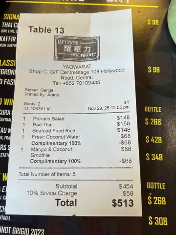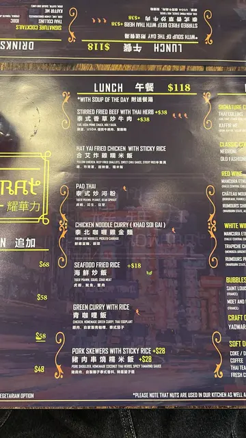 在中环寻觅价钱亲民的泰国菜,找到这间在中环半山(荷李活道),连Google Map都暂时找不到的「耀华力」。店内装潢简简单单,光猛有空间感,加上木枱及空背不锈钢櫈;还有些尽力说广东话的(疑似)泰国裔店员,环境上已令人期待。餐牌上食物选择不多,前菜到甜品总共只有约20道菜。