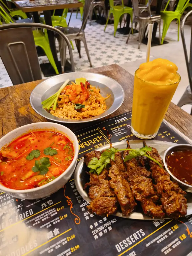 在中環尋覓價錢親民的泰國菜,找到這間在中環半山(荷李活道),連Google Map都暫時找不到的「耀華力」。店內裝潢簡簡單單,光猛有空間感,加上木枱及空背不鏽鋼櫈;還有些儘力説廣東話的(疑似)泰國裔店員,環境上已令人期待。餐牌上食物選擇不多,前菜到甜品總共只有約20道菜。