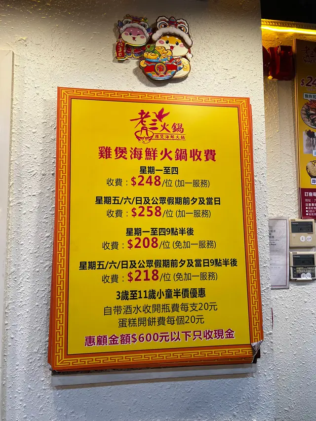 星期日晚同朋友黎到全港最抵食 旺角老三雞煲,$253無限時任食任飲,真係抵食😋好少邊爐食材咁新鮮 主打推介:- 🌶️香辣滑雞煲超BB辣,唔食得辣都話正!- 即炸脆響鈴 超香脆,點雞煲汁- 🐓花膠雞鍋3個鐘頭熬花膠雞湯滋補,膠質滿滿!送生猛鮑魚海鮮拼盤:鮑魚、海蝦、生蠔、蟶子…好大隻😆有啲仲郁緊 新鮮到不得了!- 🐟龍躉+鱔片生劏即切,鮮味爆燈,完全唔腥,龍躉我Encore左幾次!- 🥩安格斯牛+西班牙豚肉肉香嫩滑,追加都唔手軟!- 🦐手打蝦丸+特色餃子彈牙又多汁!- 素什菌+田園時菜蔬菜清新,娃娃菜最清甜🍦汽水雪糕涼茶任飲最鍾意食嘅雪糕,呢間店係本地品牌,有榴槤味、香芋味好食!呢間係十八年嘅老字號火鍋店,有情懷!地方寬敞,仲有獨立包房,服務好好,地鐵站行幾步就到!估唔到最後我地由6點食到10點,餐廳好滿座,下次一定叫埋屋企人一齊黎…查看更多