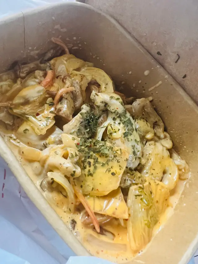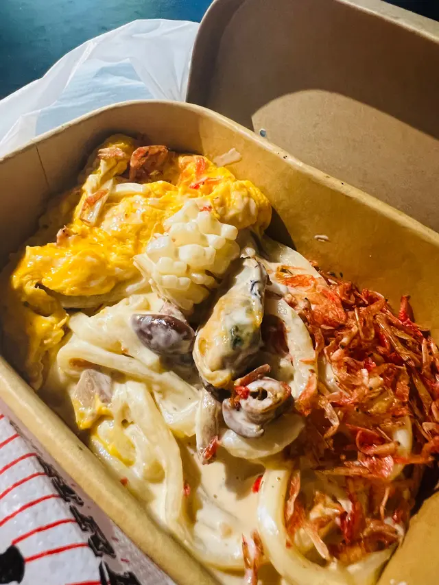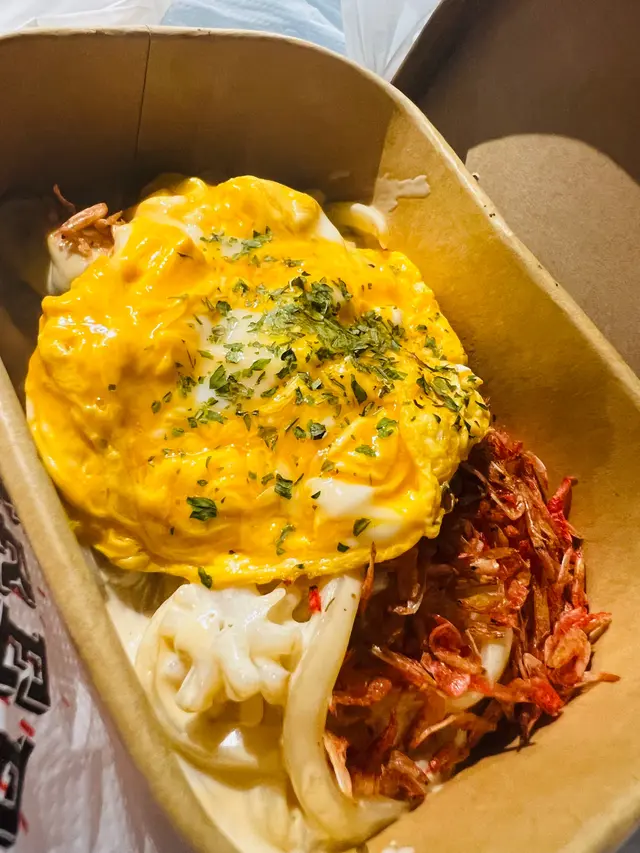 芝士白汁蒜蓉海鮮滑蛋烏冬