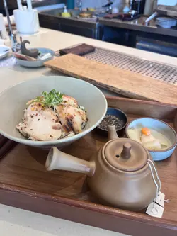 前日同朋友练完gym顺便发掘到呢间宝藏茶室🏋️♀️星期六日超爆场!难免系lunch time嘅时候排一阵队🫡想试要早啲冲🏃♀️呢度大部份嘅菜式都系以中式茶/中菜为主题,菜式有特色之余,味道亦都非常之好👍🏻慢煮鸡胸茶渍饭嚟到呢度又点可以唔试吓招牌菜茶渍饭呢?呢度用上新鲜泡嘅四季春🍵,再加上慢煮嘅嫩滑鸡胸🍗,同埋藜麦蘑菇炮制既饭底,捞埋一齐简直系Perfect match! 再配上附送嘅渍物,酸酸甜甜非常开胃。好想再encore!💕川风担担宽蛋面 🍜以四川担担面作为基础,再加上意式肉酱同埋口感弹牙嘅宽蛋面,相比传统嘅担担面,冇咁麻辣之余又大有浓浓嘅咸香非常之适合我呢个唔系好识得辣嘅人乌龙茶拿铁/四季春拿铁🍵用上低糖豆奶碰撞传统乌龙茶//四季春,茶感依然好重,非常香浓微熏茶冻配雪葩如果食晒啲咸点之后想要啲清新啲嘅感觉,呢个茶冻就最适合不过!茶冻茶味超浓唔死甜!加埋雪葩同果汁,带淡淡木味治愈~…查看更多