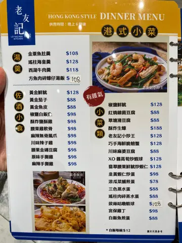 15/4/2024映完魔鬼山日落,紧系去医肚😙喺Open rice 揾咗呢间老友记厨房试吓,即刻觉得好运气,拣啱咗🥰平靓正!!! 我哋一行七人嗌咗两个套餐,$328龙趸三宝(金银蒜云耳蒸头腩、翡翠炒斑片、密椒薯仔牛柳粒)和$238精选三宝(凤梨生炒骨、豉汁蒸白鳝、椒丝腐乳通菜)另后加咗椒盐鲜鱿,每个小菜都够镬气,又好味,份量都好足够。还有点菜后餐厅奉送每人一盅无味精靓汤,当晚是眉豆鸡脚猪骨汤,好足料亦美味。 我自己就最欣赏个翡翠炒斑片及椒盐鲜鱿,前者味道适中,斑片啖啖肉够新鲜;后者够镬气,除咗炸蒜蓉外还夹杂咗少少咸蛋黄令整个鲜鱿更加香和惹味,伴酒一流😋 当然餐厅都有进步空间,例如个蒸头腩有点过火,但味道OK,还有凤梨生炒骨,用的是薄猪扒,上炸浆后略干硬,整体味道不俗,卖相好。 重点嚟喇,除咗以上嘅𩠌,我哋仲嗌咗四支啤酒就三罐汽水和四个白饭,全餐消费只系$892,每人除开只系$127.5, 劲抵食🔥🔥面对北上消费热潮,香港食肆好难维持,希望呢篇食评可以支持吓呢间良心食店,我哋一定会再帮衬,下次可以试吓个龙虾伊面餐,真心期待🥰⋯⋯
