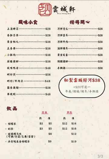 因为想揾一间养生又有新鲜海鲜既地方庆祝朋友既小聚,所以我就黎到旺角新开既养生餐厅——老四云城轩。环境舒服,吾会太迫,气氛轻松,最重要系菜式有心思,食得健康之余又有惊喜。😄.蒜蓉鲜虾荷叶蒸饭 $68招牌之一,开边虾上面铺满蒜蓉,视觉已经吸引。虾肉鲜嫩弹牙,蒜蓉带来香气但吾抢味;荷叶香渗入米饭,饭粒吸满虾汁同蒜香,口感湿润又有层次,$68黎讲真系抵食。每一口都有海鲜既鲜甜同蒜香既温柔结合。🦐🌿.龙趸酸菜米线 $88真系第一次见龙趸酸辣米线,餐厅每日落单买最新鲜既海鲜,龙趸肉大大块,咬落去好实净有弹性,完全食到鲜味。汤底酸辣得岩岩好,开胃但吾会盖过鱼既鲜;米线滑身有弹性,同大块鱼肉一齐食,好有满足感。对于中意海鲜同重口味既朋友,呢碗真系有惊喜。🐟🔥.盐香鸡翼 $28外皮香炸到微微起脆,入面仲保持多汁,咸香味够而且均匀,作为小食或者配饭都好正。每只鸡翼都炸到金黄色🍗😋.手撕鸡 $58手撕鸡伴住油洋葱丝、芹菜丝、红萝卜丝、青瓜丝,口感好有层次:鸡肉嫩滑,配菜爽脆,油香提升整体风味,加上香辣既调味,食落有少少刺激但好开胃。非常适合想食清爽又有味道既选择。🥗🔥,奶茶 +$5;手打鸭屎香柠檬茶 +$9(套餐优惠价)奶茶顺滑,甜度控制得好,做埋饭后既收尾刚好。手打鸭屎香柠檬茶香柑橘味突出,带住清香既果皮味,两样饮品做套餐加少少钱好抵饮🍵🍋…查看更多