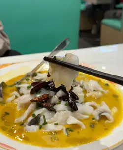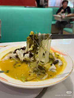 金汤酸菜海驴鱼,鱼的份量有1斤,所以食落非常多,鱼肉嫩滑无骨,食落啖啖肉。汤底可以拣辣度,我地拣左微辣,食落酸辣度刚刚好,内有大量酸菜,而且仲有宽粉,吸收左汤嘅味道,更美味!