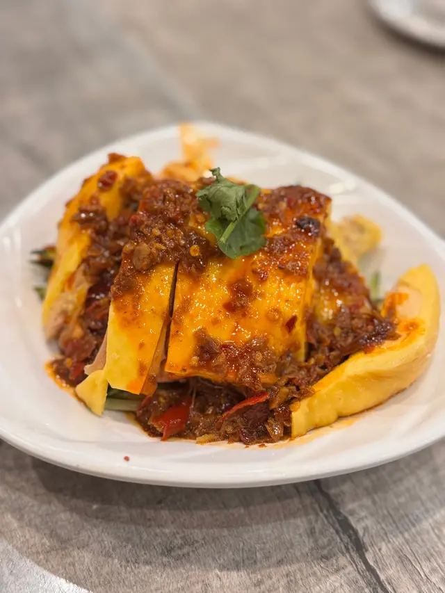 鴨肉香軟,不過太忙所以肉乾咗少少,嬤嬤皮都係蒸到乾咗啲,有幾塊裂咗二食:茄子炒鴨架 $ 60推薦大家要叫埋二食,因為鴨架都剩唔少肉,而且加茄子同醬爆炒真係好香。甜品 - 高力豆沙 $ 13/件少見嘅傳統甜品,未算好出色,但唔錯