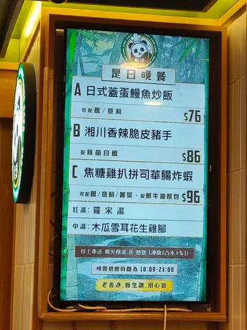 老港冰室一直以其地道的港式风味和实惠的价格吸引著食客。晚市真的要早点排队等位,座无虚席的。没想到这里职员服务超好,除了说话有礼,一坐下,会问我们需不要不要协助下单,还是QR code下单,上菜时又会说唔该,真是意外的好服务。见到餐牌上写著三大服务承诺:不满意服务态度,全单可享85折;点菜后30分钟内不上菜,超时菜品85折;对菜品不满意,菜品85折。怪不得如此好服务!这三大服务承诺,真的能做到。明火例汤一盅$9,这晚是青红萝卜猪骨雪耳汤,没想到如此浓郁,可能已经盛到底,真的是精华所在,又浓又甜,不加味精,有家的味道。鸭屎香柠檬茶,跟餐加$12,这款饮品的酸甜恰到好处,柠檬的清香,独特的鸭屎香茶味道浓郁,香得不得了,别具一格,推介要喝,特别适合在炎热的夏天饮用。蒜蓉粉丝蒸凤尾虾$88,虾肉新鲜爽口,粉丝吸收了蒜蓉的精华,弹滑又开胃。这道菜的视觉效果也很吸引,开边虾蒸熟后卷成圆形,色彩鲜艳好看。招牌酸菜鱼$68,鱼片嫩滑,酸菜的酸味恰到好处,汤底的咸香,带有微微的辣味,令人食欲大开。这道菜超值,$68有一盘一人份量酸菜鱼,晚市时间往哪找了?红烧五花腩肉$78,半肥瘦的五花腩,肉质肥而不腻,酱汁浓郁,卤得入味,还有生菜垫底。每一口都能感受到五花腩脂肪溶化的口感,十分邪恶!芝士流心西多$28,当甜品让人心情愉悦。切开时,浓郁的芝士流出,芝士咸香的口感取代传统花生酱馅,洒上糖浆,甜而不腻,适合喜爱芝士的朋友。总的来说,老港冰室的菜式无论从味道、价格还是服务来说,都让人感到满意。这里的每一道菜味道都很好,连鸭屎香柠檬茶都做得很出色。无论是家庭聚餐还是朋友聚会,都是一个不错的选择。…查看更多