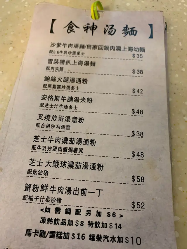 下午茶時間幫襯咗呢間茶餐廳,因為唔係好肚餓,見個餐牌寫住「食神湯麵」咁爸閉,於是叫咗叉燒煎蛋湯通粉配合桃莎莉蛋糕,野飲就要咗熱咖啡。杯咖啡真係好好飲,有驚喜,香濃做到恰到好處,難得茶餐廳都做到咁嘅水準,真心掂。個叉燒煎蛋湯通粉嘅煎蛋竟然係煎到脆邊,唔知係佢一向都咁高水準定係我好彩呢?下次幫襯再試試先。合桃莎莉蛋糕都幾過癮,真係好耐無食過莎莉蛋糕,呢度竟有得跟餐。佢呢度薄薄地切兩片,不過我個人覺得厚切咬落去會開心啲。…查看更多