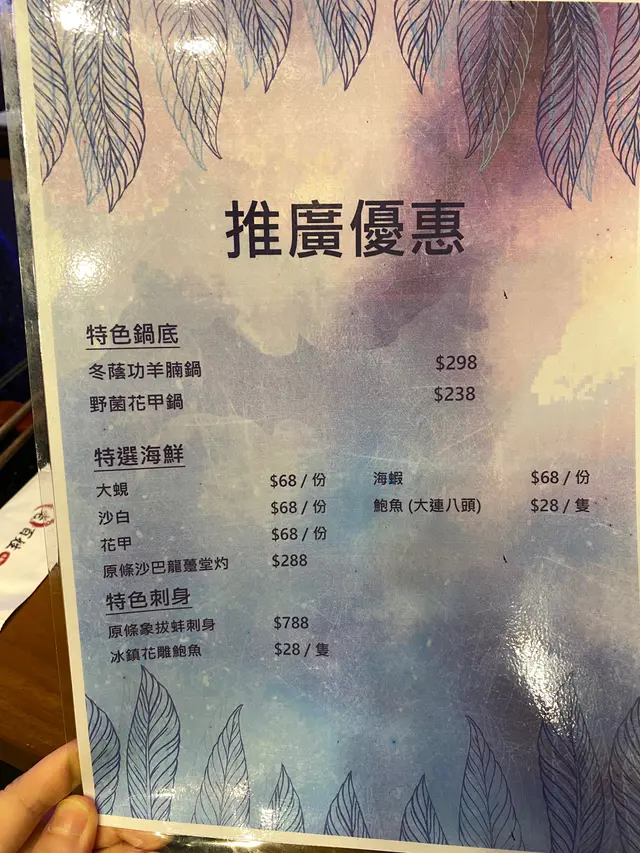 好耐冇食火鍋~ 就嚟左呢間餐廳🤤一入到去第一個感覺就係乾淨企理~ 喺疫情下更顯得難能可貴~ 店員好殷勤咁問我地點咩又上調味~服務態度不錯~ 點左個刺身,擺盤好靚~ 睇得出好新鮮~ 味道亦不錯~湯底點左滋潤百姓湯($338)湯餡勁豐富,有花膠、螺頭、哈密瓜同雞湯~店員特別介紹哈密瓜係佢地獨有,令雞湯更添甜味~ 湯餡真係非常足料又特別,值得一試!花雕醉雞就食得多,陳年花雕肥牛($158)真係好少見~ 食落好濃既花雕味,肥牛滿滿的吸取了花雕,味道更加重同惹味~脆脘魚腩($88)切得厚厚的,非常美味~日本黑豚豬肉($108)大大片,切得薄薄的,肥瘦均勻,味道亦相當好!招牌鴛鴦滑($108)賣相有驚喜!砌成2條魚好生動!味道比一般魚滑好吃😋…查看更多