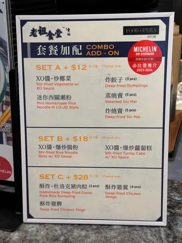 去东荟城逛得饿了,找点吃的。在食代馆见到老祖食堂有米芝莲必比登推介2023-2024,于是决定一试。点了一客极黑.黯然销魂饭和XO酱爆炒肠粉。极黑.黯然销魂饭配杜洛克猪肉,更显矜贵;杜洛克猪肉经过精心烹调,肉香四溢。煎蛋的蛋黄恰到好处,流心的口感为整道菜增添了丝滑的风味,与猪肉相得益彰。米饭粒粒分明,吸收了猪肉的香气,与其他配料完美融合。XO酱爆炒肠粉质地滑顺,口感柔软,与炒制的火候恰到好处,让人每一口都感受到其独特的韧性。XO酱的风味浓郁,带有微微的辣味和海鲜的鲜香,为肠粉增添了层次感,令人回味无穷。…查看更多