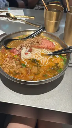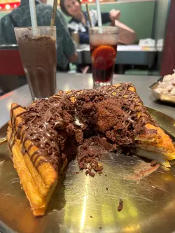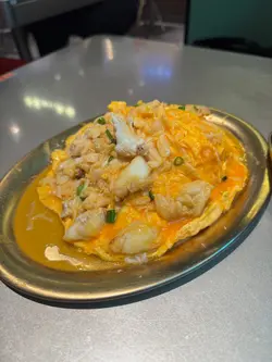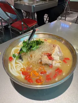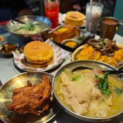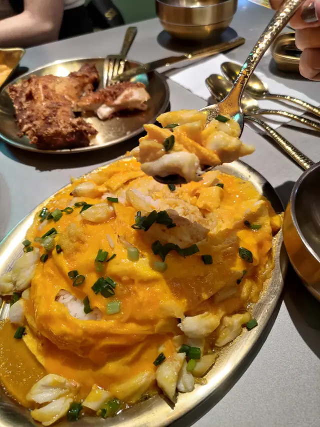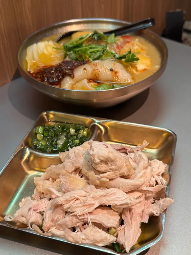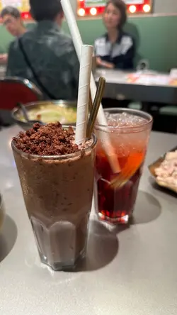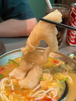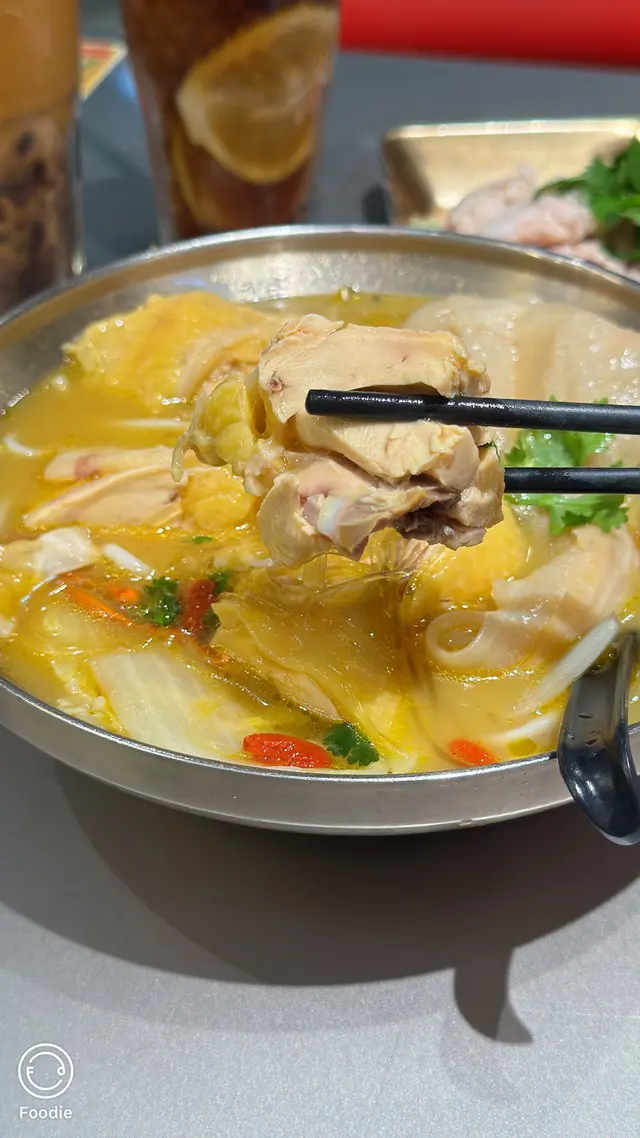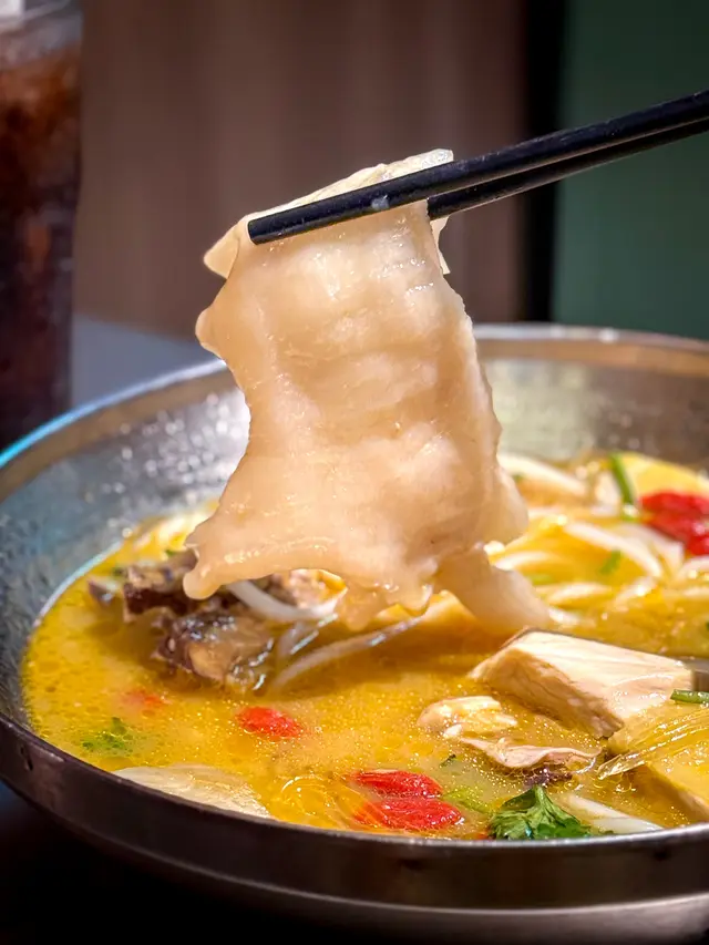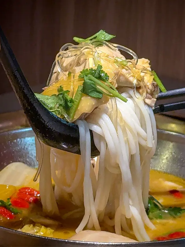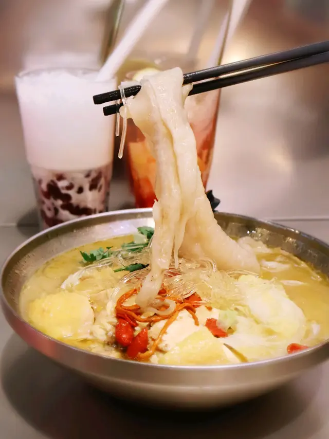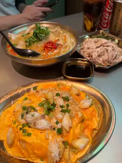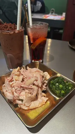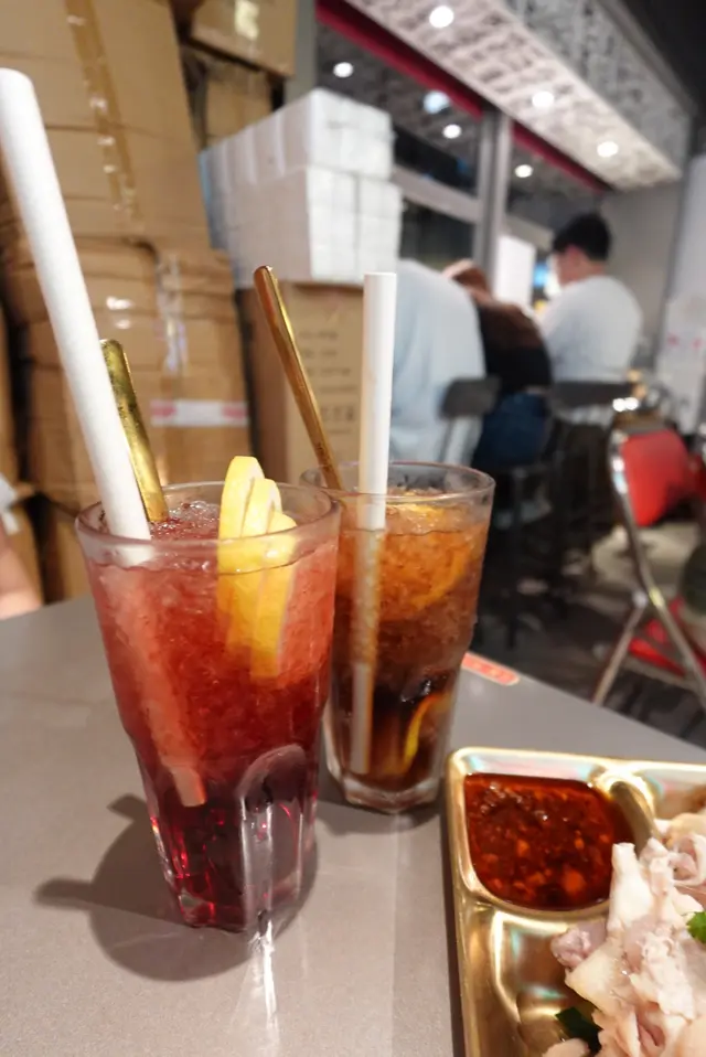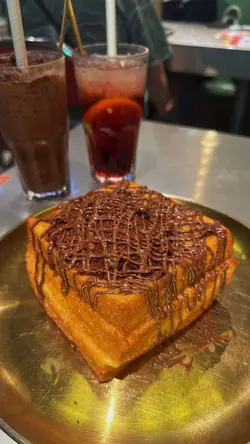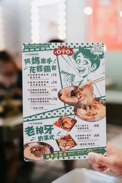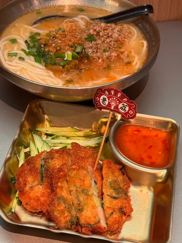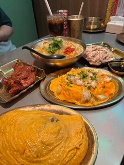 餐廳有著一個色彩繽紛的門口, 裝修像大戲戲棚般, 一看就知是老荔冰室, 非常吸睛! 🤩 連室內牆壁都有對小龍鳳, 有大量金句, 裝修滿有心思, 不過始終地方細小, 會有點迫, 但都依然有很多人排隊用饍, 證明有其吸引之處 🙂↕️滑蛋沙爹牛肉飯 $72加了大量醬汁及輕微花生醬, 鹹中帶甜, 完全不辣, 是重口味之選 😏 牛肉軟腍, 但滑蛋更出色, 做到半熟狀態, 更加滑溜! 另外加了很多細小花生碎粒, 我個人就不太喜歡, 有點格格不入 🙃花膠雞阿媽足料雞湯米線 $72鮮蝦餅小棠菜配酸辣米線 $58花膠雞煲是其中1道招牌菜, 入面有很多配料, 杞子, 雞肉, 當然少不了花膠, 還有素翅做點綴 😚 花膠蠻大件的, 這個價錢不可能要求又厚又粘性高的花膠, 至少花膠不會很硬! 唯一問題是整碗米線不夠味, 同時都證明它無添加味精 😌 反而酸辣米線惹味更多, 蝦餅即叫即炸, 入口彈牙。增肌蔥油手撕雞 $48以有約65g蛋白質做賣點, 可以配蒟蒻麵一起吃, 專門為做gym人士而設, 除了補充蛋白質, 亦不會像平時gym友吃的烚雞一樣冇味肉質粗糙 😬金沙朱古力流心西多士 $52這個是我最期待的食物, 3層厚的麵包堆砌而成, 麵包十分軟熟, 上面鋪滿朱古力, 想不到是脆的! 單是外觀已經很震撼 😍 切開預期的流心一刻, 可惜失望了, 並沒有流心的 🫠 雖然如此, 味道依然有濃郁朱古力味。椰汁紅豆冰 $26奶茶紅豆冰 $26…查看更多