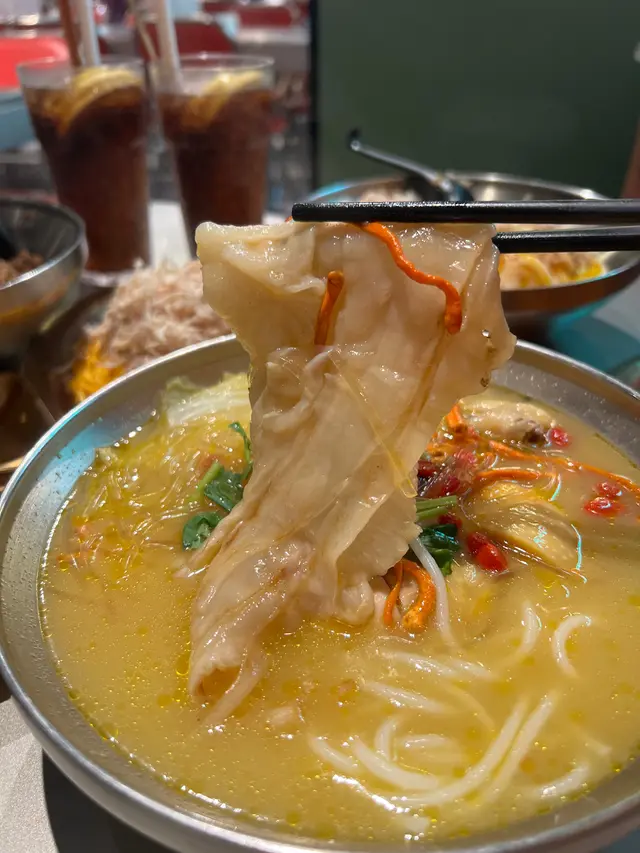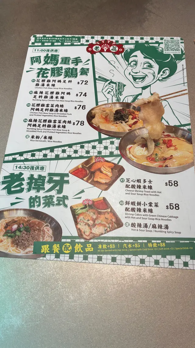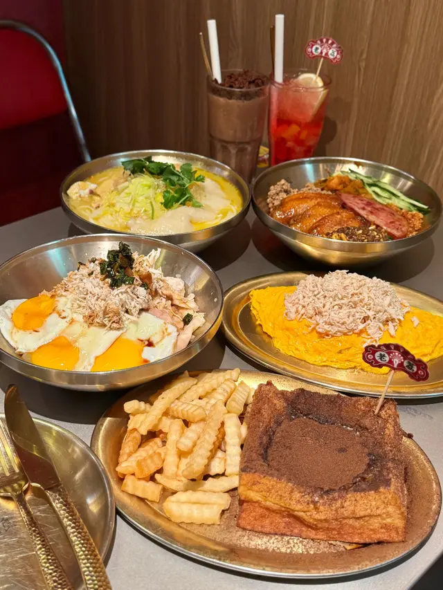 週末的下午來到,不遠處已經看到由搶眼霓虹燈製成的戲棚餐廳門面。餐廳內的一邊牆身是舊式酒樓的裝潢才有的龍鳳,已經很久沒有見過了,充滿舊式的復古港式味道。而且餐碟和牆上都印上港式盞鬼有趣的字句。除了一般茶餐廳冰室的食物之外,竟然有售賣以蛋白質為主的菜式,為健身和注重健康的人士提供一個選擇唷!♡雪山雞絲配粟米巨型奄列$48這個巨型奄列大約有50g蛋白質,表面灑有雞絲,蛋包裹着粟米。♡Tiramisu漏奶西多士$52非常邪惡啊!整個西多士都被Tiramisu醬汁包圍,一切開內裏的Tiramisu醬就湧出來啦~每一口都吃得到濃郁的Tiramisu味道。♡巨石鋪天飯$72手撕雞、雪山雞絲、三眼仔有趣的菜式名稱,鋪天飯用上蛋白質的英文Protein諧音。這個飯大約有80g蛋白質,三隻太陽蛋加上雞絲,可以選麻辣/蔥油/走醬或是另上,十分彈性,照顧到不同人的需要~♡花膠雞阿媽足料雞湯米線$72 🥢必點🥢大大塊的花膠,雞肉軟腍入味,配料有杞子、蟲草花、粉絲,雞湯清甜味美。♡麻麻地豬扒撈米線$67 🥢必點🥢豬扒大件香口,配料選了肉燥,配料還有酸菜、青瓜絲、肉燥,把所有配料和米線撈勻,味道帶有麻酸辣,非常惹味啊!♡阿華田脆脆火山$26阿華田味道十分香濃,加上脆脆增添口感。♡咖啡紅豆冰$26除了咖啡紅豆冰之外,還有椰汁紅豆冰和奶茶紅豆冰可以選擇。味道豐富,咖啡和紅豆的配搭不錯。