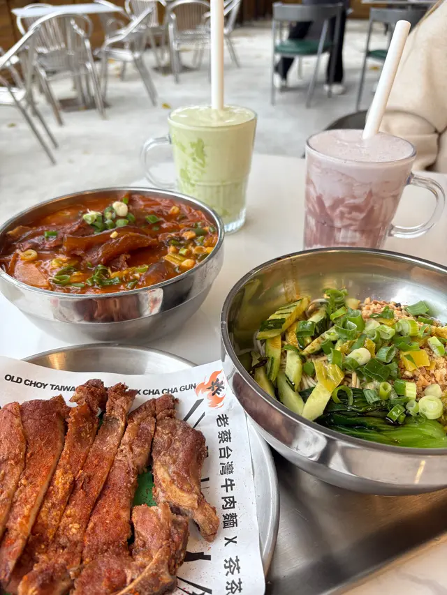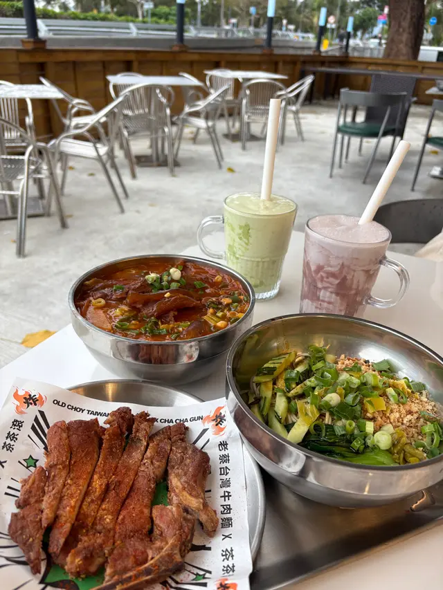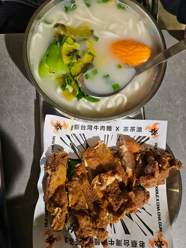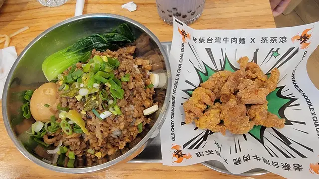 老蔡台灣牛肉麵 x 茶茶滾大埔餐廳必食雙殺:蟹皇乾拌麵 + 特濃芋泥鮮奶行開大埔想掃街食好西?約老蔡聯乘茶茶滾呢個組合真係無得輸!今次試咗兩款招牌,食完直頭想encore,同大家分享下~蟹皇乾拌麵:蟹膏控尖叫級!一上枱就聞到超濃蟹膏香,唔係味精味,係真·蟹皇嗰種鹹鮮!撈勻每條麵都掛滿金黃蟹醬,仲食到啖啖蟹肉絲,口感勁滿足。麵身用幼身拉麵,爽彈唔淋,掛汁力100分。最驚喜係加咗少少醋提味,中和膩感,食完一碟都唔滯。重點:百零蚊有交易,比出面蟹粉專門店平一大截,性價比爆炸!特濃芋泥鮮奶:芋泥山火山爆發!茶茶滾嘅芋泥一向無敵,今次聯乘版再升級!目測半杯都係芋泥,綿密到黏住喉嚨,仲保留微微芋頭粒增加口感。鮮奶用本地品牌,奶香醇厚但唔會搶芋頭風頭。甜度固定(約微糖),建議飲前瘋狂攪勻,每啖都係芋泥+奶香double kill~凍飲杯底仲有芋泥沉澱,飲到最後都仲有料,抵讚!食評小筆記:蟹皇麵記得趁熱撈勻芋泥鮮奶揀少冰都夠凍,冰量固定唔怕沖淡味。兩樣夾埋食超有罪惡感,但⋯⋯人生就係要任性啊!(笑)總結: 蟹皇麵鮮味直擊靈魂,芋泥奶誠意滿分,兩款都係「食過返唔到轉頭」級數。經過大埔記得留肚試,保證唔會中伏!…查看更多