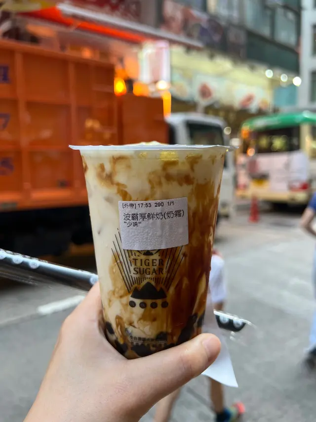 今天就是要一嘗珍珠紅茶厚拿鐵! 來自台灣的老虎堂黑糖專売,憑藉「虎紋掛壁」的黑糖珍珠鮮奶紅遍港台,這次來到銅鑼灣分店,決定試試他們的另一飲品——珍珠紅茶厚拿鐵,看看是否真的能重現台灣夜市那種讓人上癮的甜蜜滋味~ 🔸 珍珠紅茶厚拿鐵|含奶霜 ⚡️ 好味指數:★★★★☆ (4/5) 🧀️ 卡路里:約450kcal/杯 💰 價格:HKD 38 👉 香氣:打開杯蓋後,濃郁的黑糖焦香撲鼻而來,混合著紅茶的醇厚和奶霜的甜膩,瞬間勾起台灣夜市的回憶🌃~ 👉 珍珠:✅ 絕對是亮點!珍珠煮得恰到好處,外層Q彈,中心軟糯,黑糖蜜漬得入味,每一顆都充滿焦糖香氣,咬下去還會爆出微甜的糖漿💥。 👉 紅茶底:茶味濃郁但不苦澀,帶有微微的麥香,和黑糖的甜味平衡得剛好,不會像某些品牌甜到喉嚨發膩。 👉 個人回憶:這杯讓我想起在台北士林夜市,邊走邊喝老虎堂的幸福感——雖然價格貴了點,但味道確實有8成相似! 奶霜稍微偏甜,建議攪拌後再喝,否則最後幾口可能會有點膩😅。 🌟 總評 (75/100) ✅ 優點:珍珠水準超高,紅茶底濃郁🍯。 ⭕ 注意:奶霜偏甜,不愛甜的朋友可以選擇「少奶霜」或「微糖」。 🙆♀️ 小建議:一定要搖勻再喝,讓珍珠, 紅茶和奶霜完美融合,每一口都是濃郁的甜蜜暴擊!🐯💖…查看更多