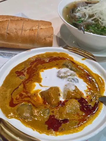 咖喱牛腩煲跟法包牛腩煮到好腍身入味,牛腩与咖哩完美结合,咖哩味道椰香味较重。搭配咖哩牛腩煲的法包,无需追求过于精致的花式,掰成小块的法包蘸取咖哩酱汁,吸饱酱汁。入口咖哩浓醇与麦香完美融合,比单吃牛腩更添一层口感。