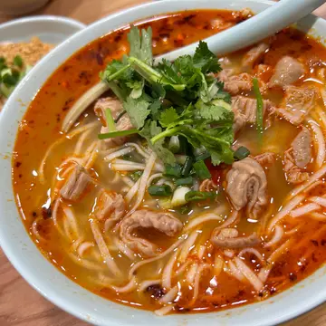 经过第一次嚟帮衬,睇见食评有啲惊,个个讲到服务好差,心谂搏一搏啦🤣可能临收工嚟,客人不多,老板娘同老板服务都好好,食到正宗酸辣粉,肥肠面都好食,肥肠没有臭味本身谭仔食中辣,呢度食BB辣已经好足够😋