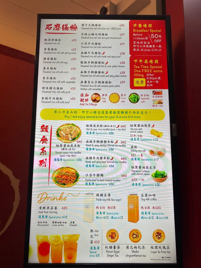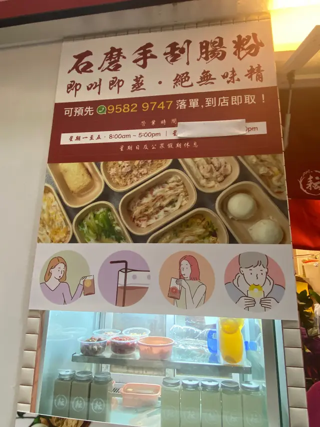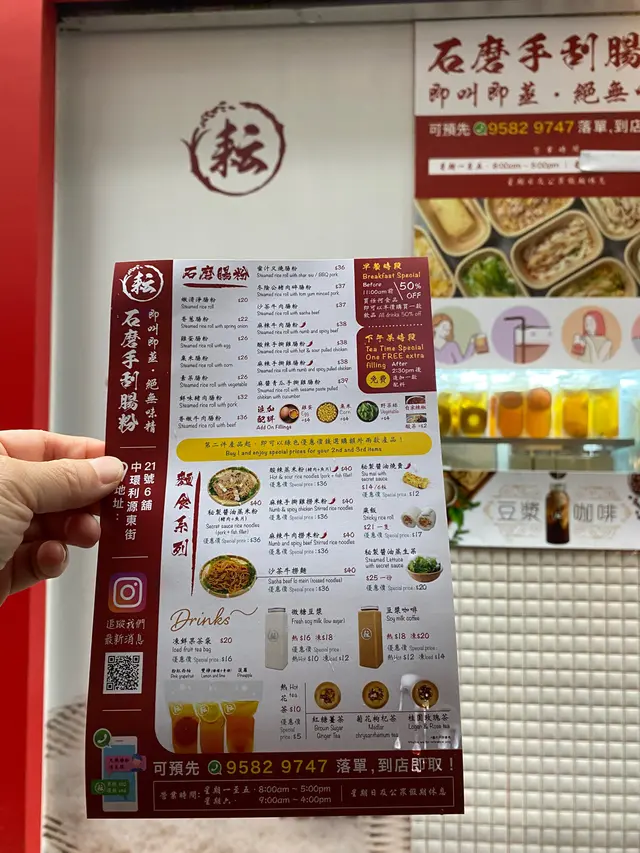 之前放lunch行過利源東街見到有石磨腸粉,今日早餐忽然好想食。石磨腸粉,係用石磨將大米磨成米漿,磨出黎嘅米漿,保留左大米嘅大部份營養,特別細膩。全部即叫即蒸,熱辣辣。🌟嫩滑淨腸粉🌟腸粉香滑,皮夠晒薄,好香嘅白米香味,漿底打得均勻,因為簿嘅原因,粉皮會皺起嚟,索汁力勁😆加埋淡豉油,非常美味。🌟雞蛋腸粉🌟滑得黎有重蛋味,口感幼細,帶點麻香,同樣皺起嚟,滑嘟嘟😋😋🌟秘製醬醬油蒸米粉🌟好少見到有蒸米粉食,效果唔效,唔會蒸到太軟身,冇炒米粉咁油膩。夾雜豬肉同埋魚片,真係豐富又健康嘅早餐。🌟微糖豆漿🌟早餐時段有半價優惠,豆味香濃,微糖既健康又唔會太甜。所有食物,即叫即整我,大約等左15分鐘,所以唔想等,下次一定要WhatsApp預早落定單😝查看更多