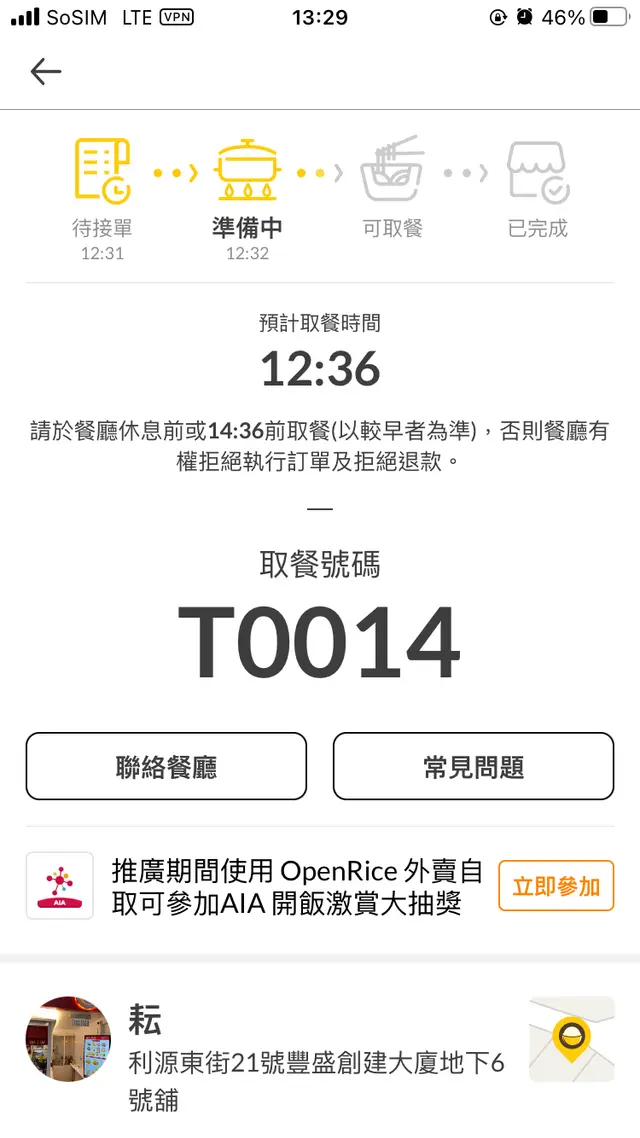 我12點落order話12:30pm 自取….結果1點先可以取! 其實食飯時間都真係好寶貴,無下次