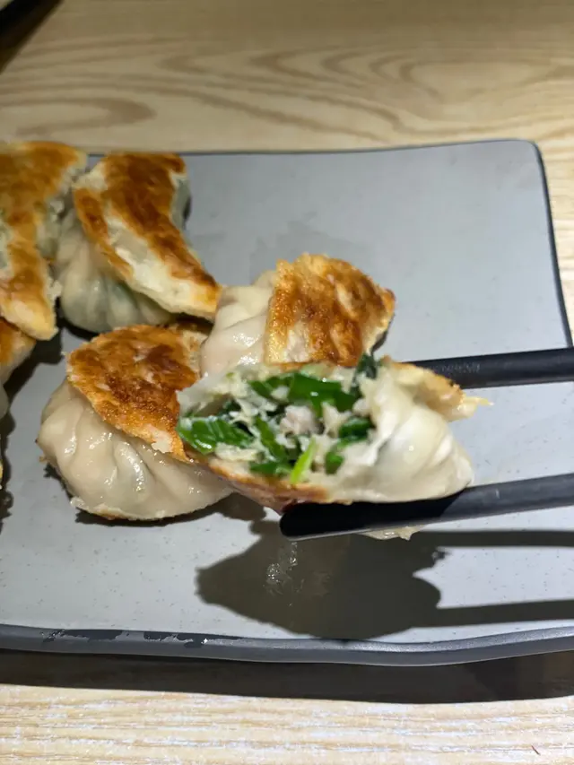 餐廳自家製的韭菜餃,每隻都煎得金黃色,外脆內軟,勁多韭菜豬肉餡,好足料,肉汁豐富!