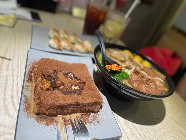 即叫即製的爆漿阿華田西多士,表面灑滿阿華田粉,非常邪惡!西多士厚薄適中,香脆鬆軟,中間夾心餡塗滿朱古力榛子醬,香滑濃郁,甜而不膩