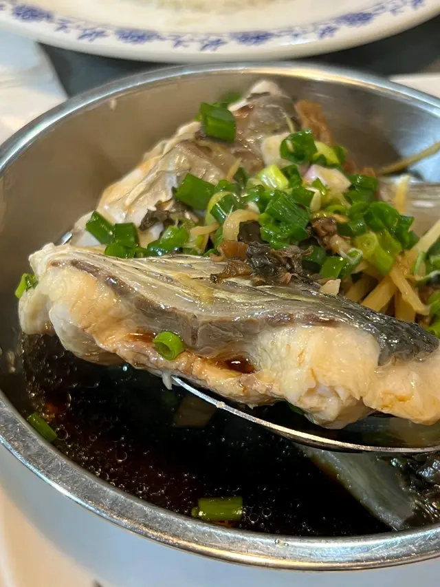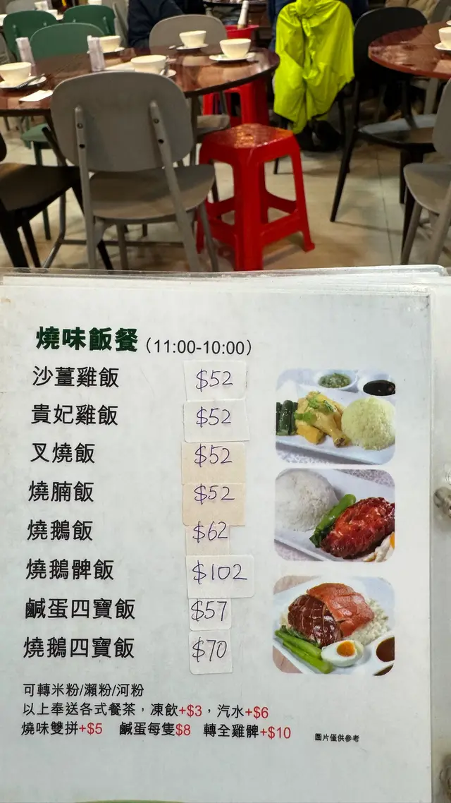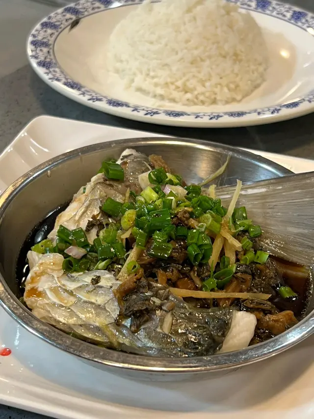 喺元朗附近做嘢就順便揾下有咩食店試下,見到有人話呢間啲梅菜蒸鯇魚幾滑(雖然佢餐廳名賣燒鵝),咁就試一試佢。入面係普通茶餐廳格局,一張大圓枱可以坐4~6人,繁忙時間有機會需要同人搭枱。入舖一坐低就唔多諗直接叫梅菜蒸鯇魚,配凍飲+$3,店員會主動問你想要咩部位,我就一定㨂魚腩,而個餐跟例湯,當日應該係椰子雞湯,都算夠味、唔似味精湯。大約10分鐘左右之後就上埋蒸魚,睇落條魚應該係即蒸,啲肉嘅口感係新鮮,唔似某啲餐廳一早蒸定、啲肉霉霉哋/嚡熠熠。食飯途中都有其他人叫蒸鯇魚,可能真係呢間舖嘅招牌菜之一。…查看更多