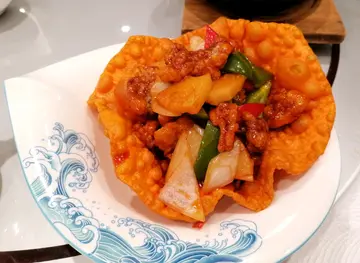 饮酒业竞争大系好正常,上手走高档路线但又唔系好食,汰弱留强系正常。二口子费事煮,试吓呢间得唔得?!叫咗个点形容?套餐?A龙虾伊面拼炸子鸡半只,芝士加$30,同另加一个小炒皇。炸鸡入口层皮香脆,肉唔「鞋」,但有小小偏咸,真系小小,如果𩠌饭一齐食就ok。呢类一份份嘅「套餐」,唔会预期有好几旧肉你食,二三旧加头头尾尾,正常,我都唔会有乜期望,求其过吓口瘾,加埋伊面食饱就算,讲返碟嘢,「龙虾球」无预期弹牙,但个芝士同伊面又整得几好食~收货。最正都系呢味,材料丰富,大家睇都睇到,不过就孤寒咗啲比较细碟,我哋二条友都仅仅够,如果一家四口,一人二口就无晒,但味到都几好食~清碟。回头度~5/10此终「中式」酒楼太多杂费加嚟加去,所以我哋真系甚少食酒家,饮茶就无问题。…查看更多