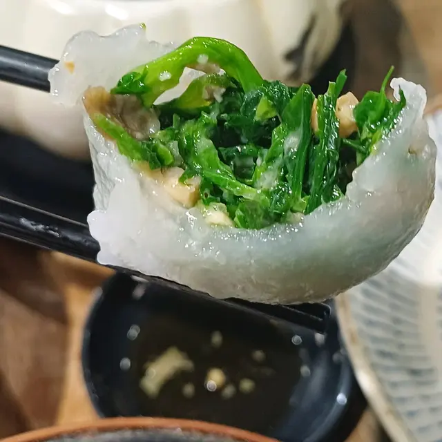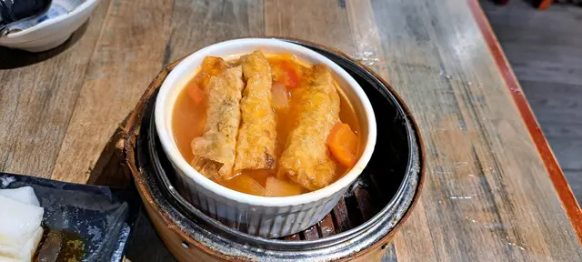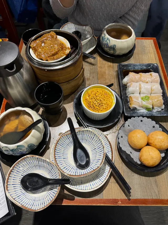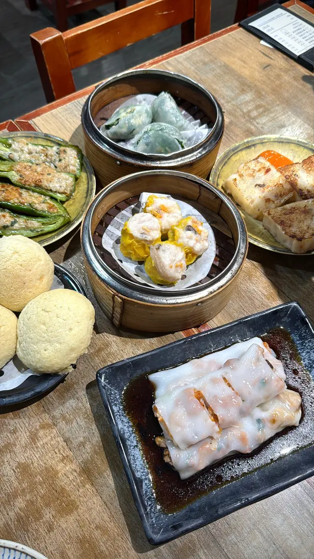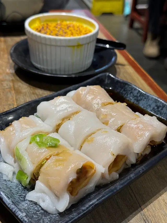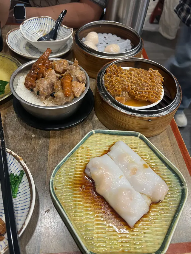 春風得意腸🌯 腸粉皮薄但又去到話透明✨ 炸春卷令到平平無奇既腸粉變得有啲特色💥 有少少一物二吃既感覺😋姐姐已經淋左豉油提鮮💦 但略帶咸😆創意點心之選🎨 蝦餃🦐 一籠四粒飽滿👌🏻 外表睇落未去到好靚😂但都算皮薄唔黏牙👄 蝦肉爽彈😗整體黎講都幾好😌燒賣🐷賣相比較一般😂但係食到係傳統豬肉+蝦仁組合💯 面頭蟹籽未去到話卜卜脆🦀 相對小咸😂可能係個人平時食開比較清淡少少鳳爪排骨飯🍖🍚鳳爪炆到好入味😋 蒜香排骨夠入味🧄 但唔夠肉地😆飯底吸晒精華💛 姐姐服務好好😌睇得出好有人情味🥰同埋真係如其他食評咁講好多外國人😂食價比以中上環黎講好平😗都幾抵食…查看更多
